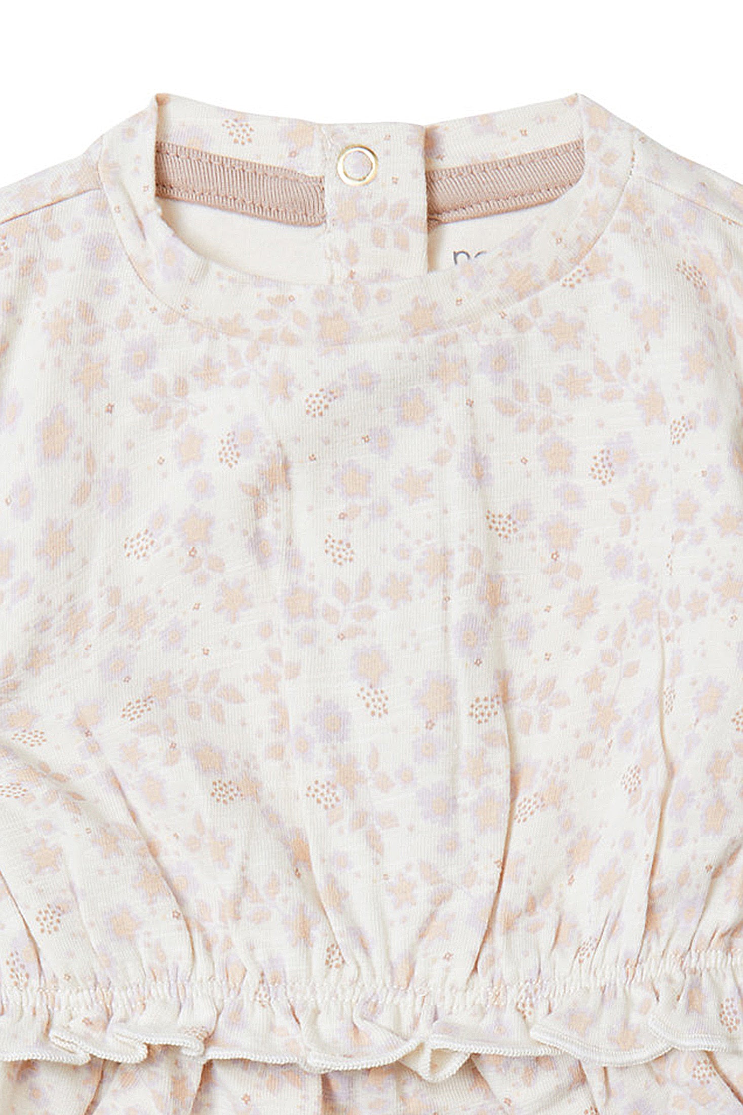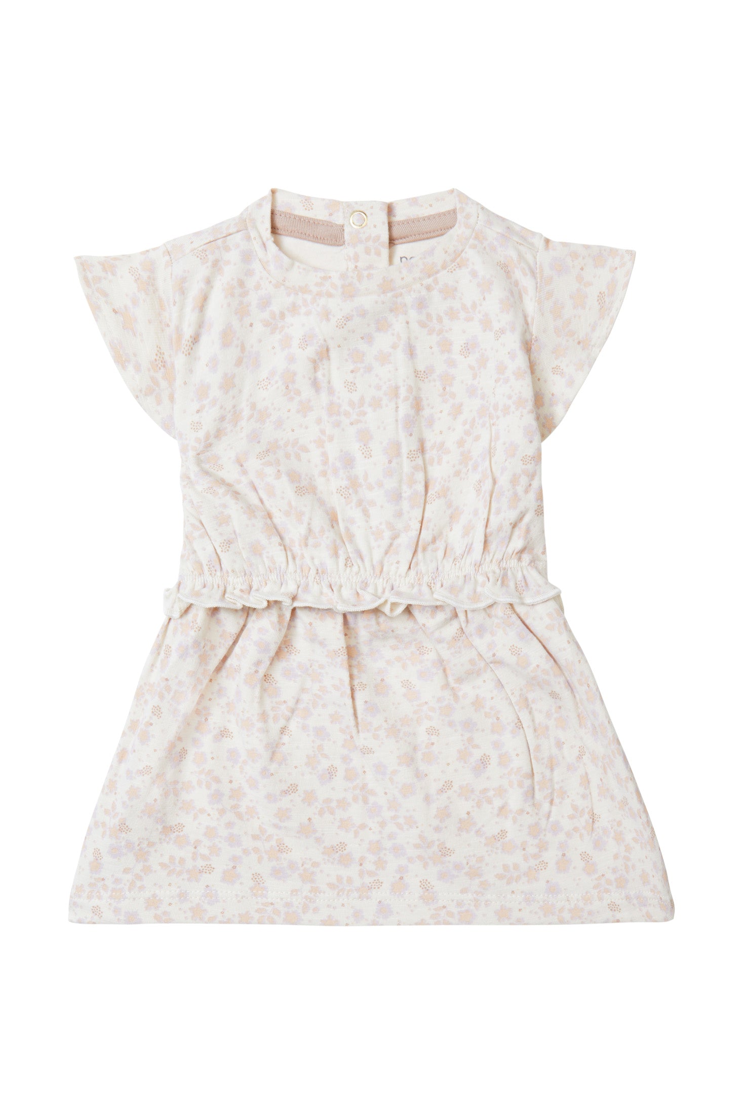 Jurk Canterbury van Noppies Baby heeft een vrolijke allover bloemprint in zachte kleuren en een speelse geschulpte bies rond de taille. Het jurkje is gemaakt van een zachte stretchstof zodat jouw baby er lekker in kan spartelen en spelen. Handig: dankzij de drukknoopjes op de rug trek je het jurkje makkelijk aan en uit.
