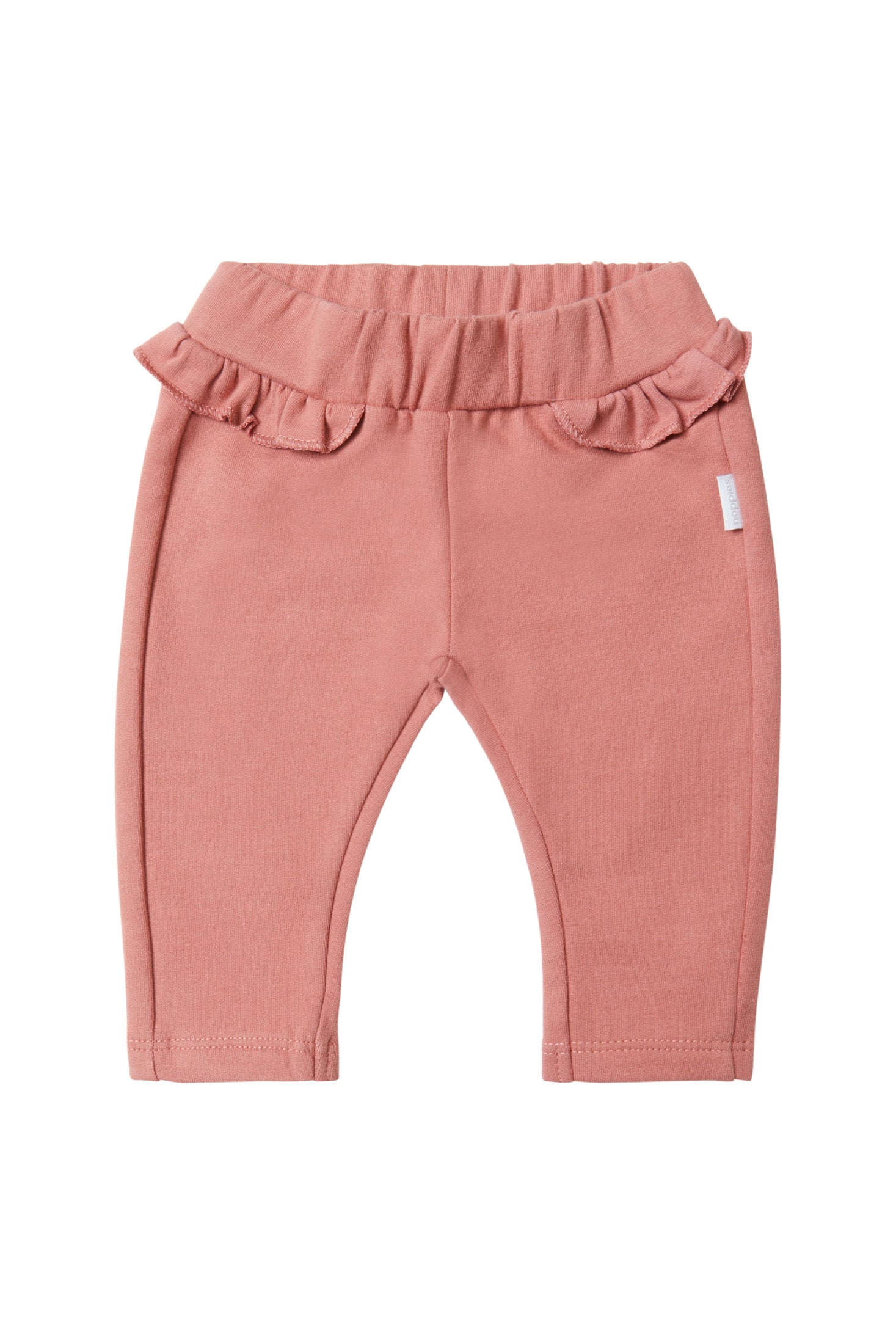 Jogging kwaliteit legging met leuke ruffle details onder de tailleband met elastiek. De binnenkant van het broekje is lekker gebrushed.