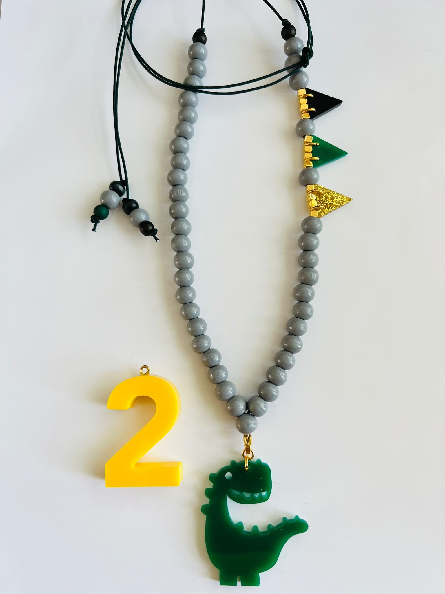 ByMelo Verjaardagsketting Grijs Geel Dino 2