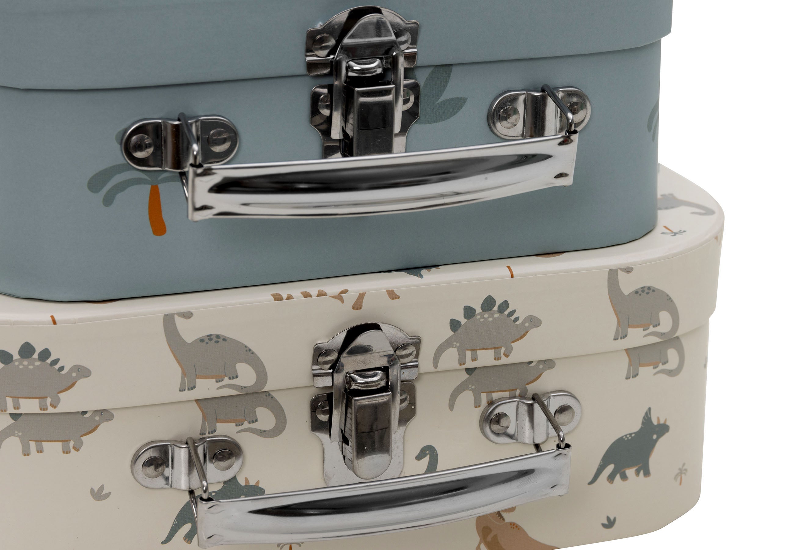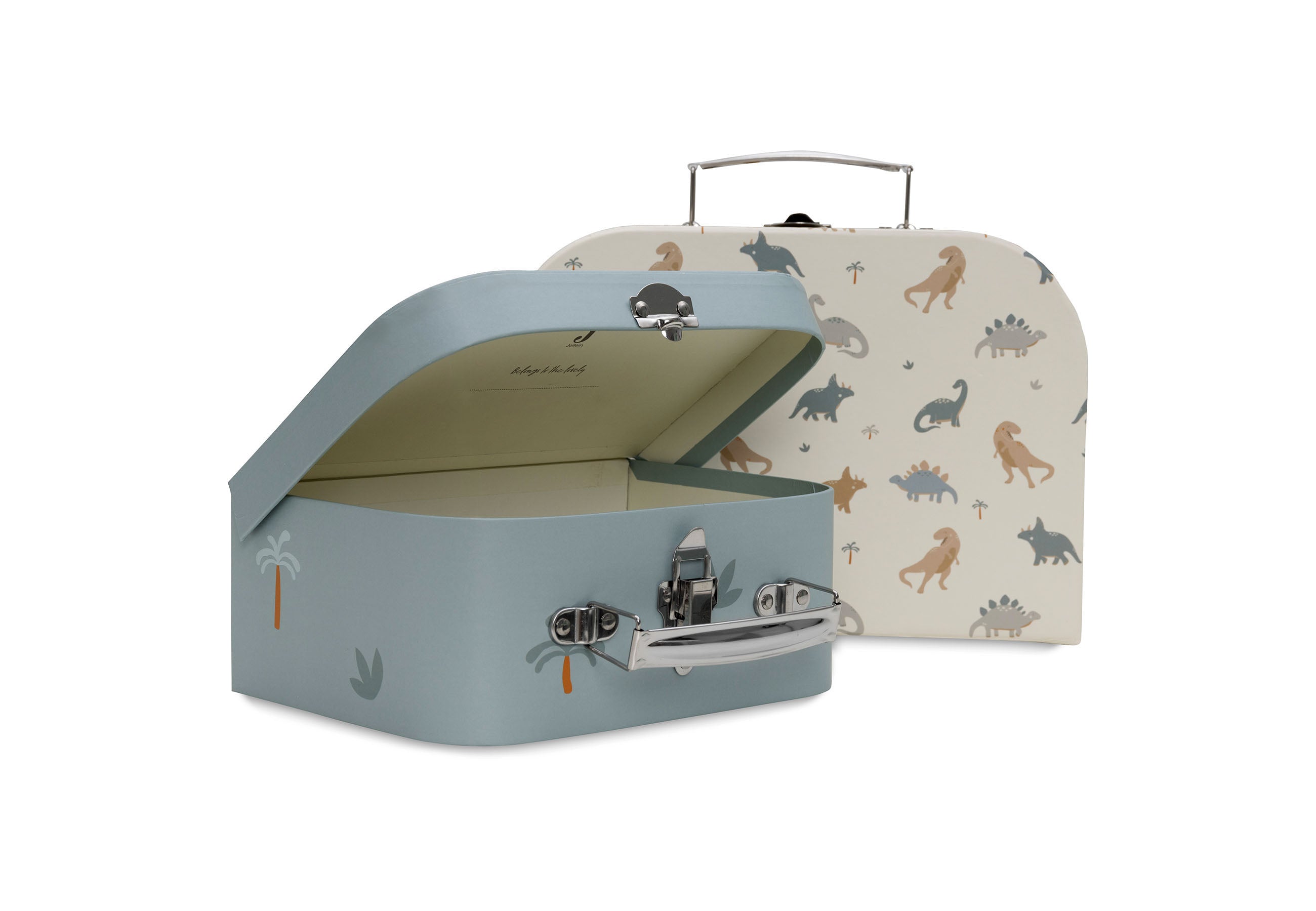 Roar! Ligt bij jullie de kinderkamer ook lekker vol met speelgoed? Met deze speelkoffertjes kan je deze items gemakkelijk opbergen. Deze 2 pack heeft 1 groter koffertje met een all-over print en 1 kleiner koffertje met drie stoere dino's! Welk kleintje moet deze koffertjes echt hebben?