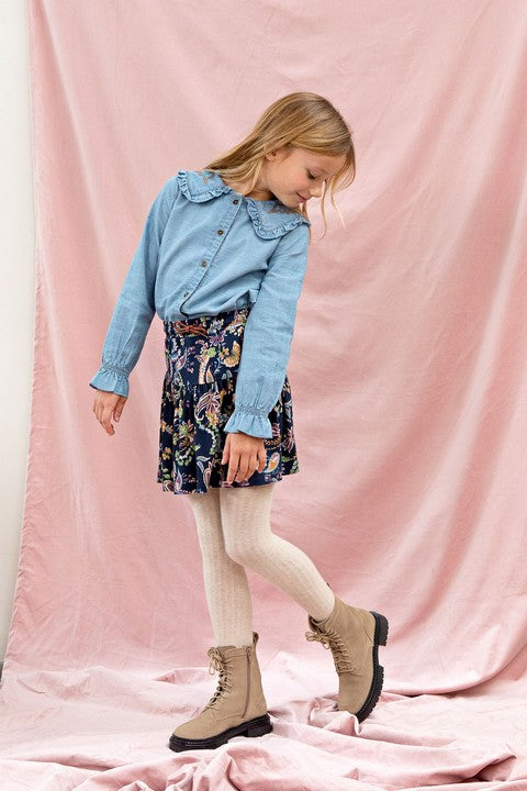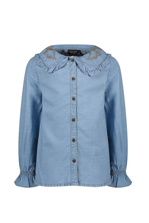 Like Flo Girls Blouse Tencell Denim Big Collar Camilla